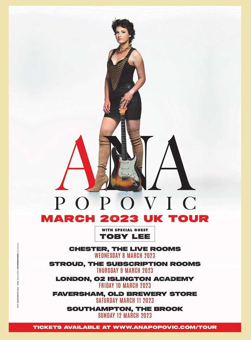After the UK dates, Ana will be heading out to play a number of dates in Europe including Belgium, France, Switzerland, Luxembourg, Germany and Netherlands. From there she will head back to the USA for 14 dates, before heading back to Europe for another set of dates in France, Germany and Netherlands, as well as whizzing off to Spain, Switzerland, Romania and Norway. Yep she’s a busy gal! The full list of dates and tickets can be found at anapopovic.com/tour. Special guest on the UK tour is Toby Lee.