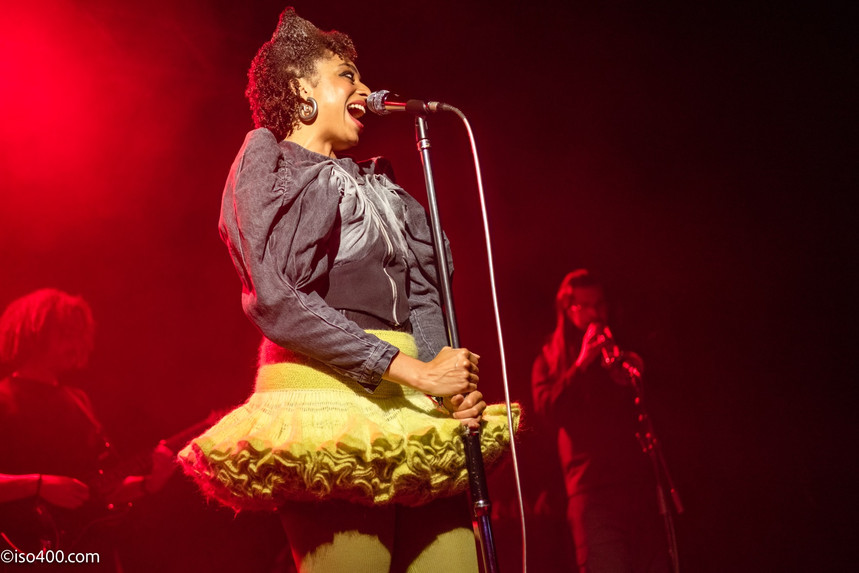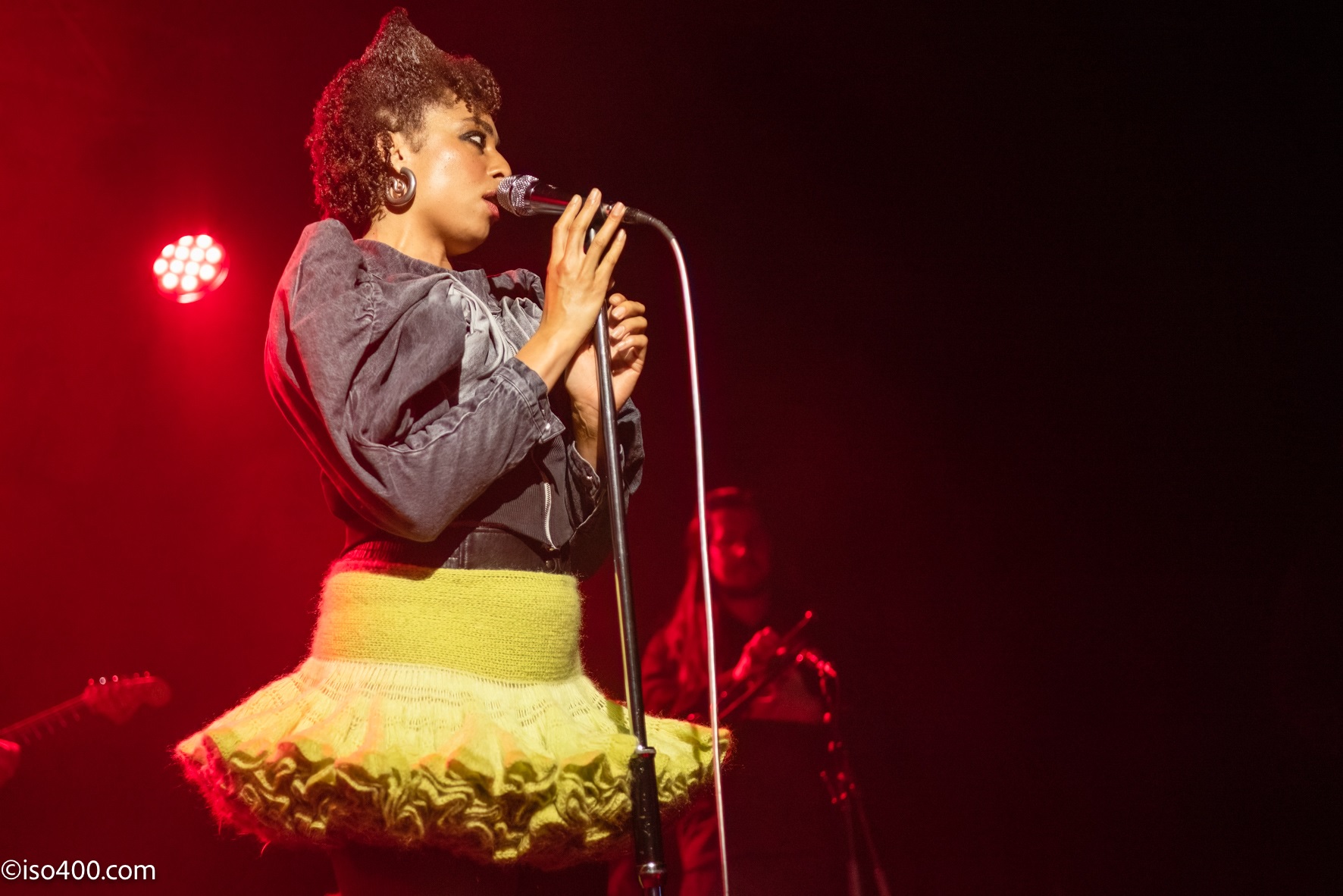 Celeste lined up alongside a full band which consisted of a drummer, a saxophonist and two guitarists. The set was bathed in a red hue throughout its entirety creating an intimate jazz-soul club vibe on-stage which framed the intimacy of the show.