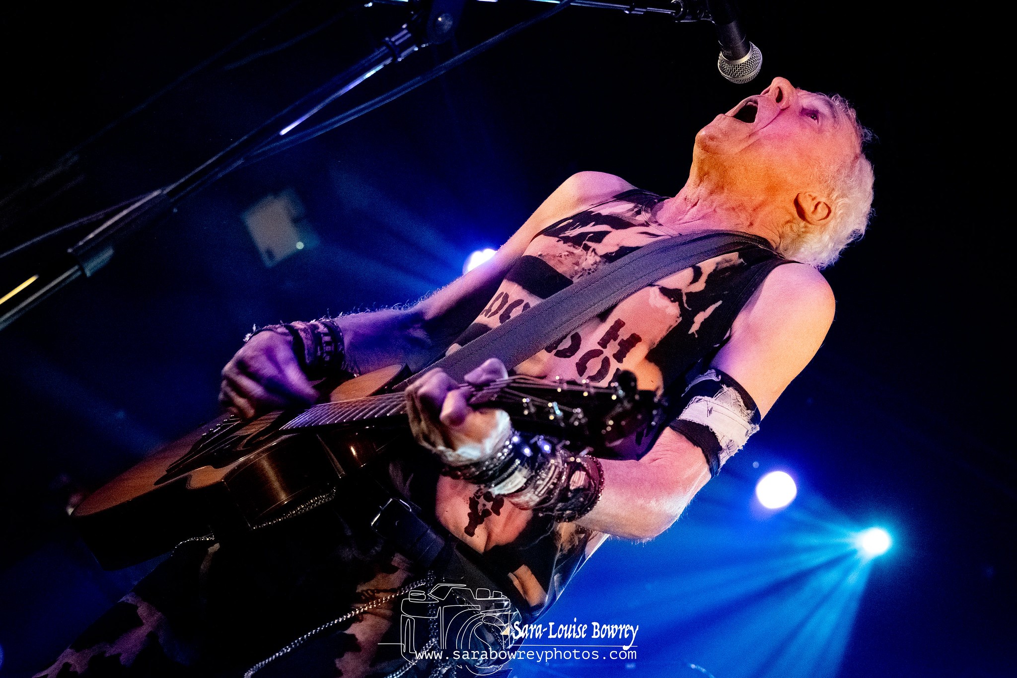 Next up we have a bit of a treat: a solo set from TV Smith, who is best known as the former frontman of 1977 first-wavers The Adverts. Along with his cherished position in the punk canon, he has since become something of a national treasure, maintaining his razor-sharp lyrical edge as a songwriter and popular performer on the live circuit, both solo and fronting various backing bands. Tonight it’s just him and an acoustic guitar, and he’s looking trim and in splendid nick, punkily cool in a tie-dyed vest and drainpipe trousers. A lively rendition of The Adverts’ ‘No Time To Be 21’ gets the audience engaged and shouting along from the off.