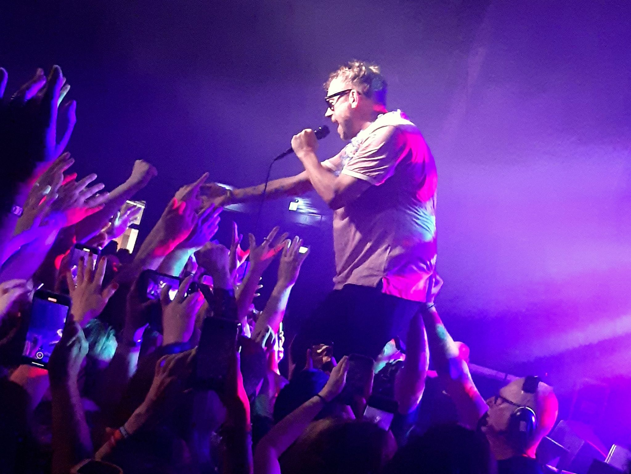 At this point in proceedings, Damon was already his cheeky self as he chucked a few plastic cups of water over the already hot crowd and then announced that they would next play a tune that they hadn’t performed live since around 1993, this being the rocky ‘Coping’ (from 1993 ‘Modern Life Is Rubbish’ album). However, this proved an astonishing comedy moment as my friend actually clocked that Damon’s tooth came flying out as he was giving it his all. There was no hiding it and one of the security guards (who much banter was shared with throughout the night) came to the rescue by locating the offending item, minus the gold apparently. I’d check on eBay or local pawnbrokers if I were you! Damon jokingly quipped that he should have used “fixodent”, clearly he was ‘Coping’ well!