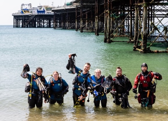 More than 100 people clearing beaches were joined by divers who collected plastic litter underwater in the area around the Palace Pier.