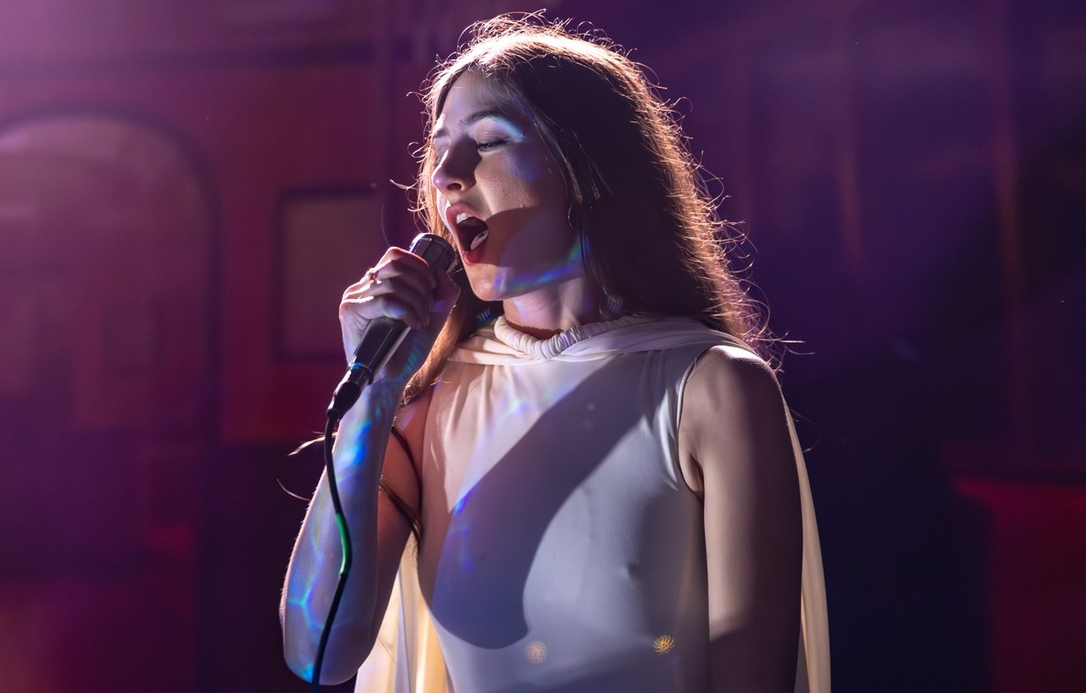 Weyes Blood is the professional name of American singer-songwriter Natalie Merling. In case you were wondering, it’s a stylised misspelling (and pronounced like) ‘Wise Blood’, a 1952 Southern Gothic novel by Flannery O’Connor. The music is hugely varied and artily performed. If you’re not already familiar, think Kate Bush or Aldous Harding, combined with the silky vocals of Alison Goldfrapp, and you’ll have the general idea. The visual element is very much in evidence tonight. The band are tastefully attired in maroon suits and dresses, and the stage is decorated with candelabras. The singer wafts onstage to a huge cheer, a dreamlike vision in a long white dress with huge floaty sleeves, long brown hair tumbling down her back. She dances elegantly around the stage during opener ‘It’s Not Just Me’, then straps on a guitar for ‘Children Of The Empire’. The crowd are loving it.