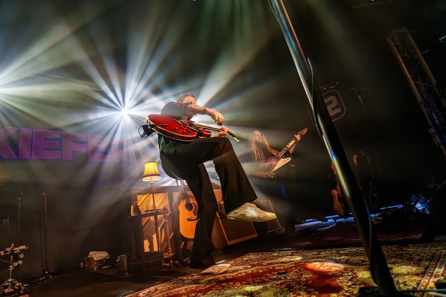 The following track, the similarly-titled ‘Going Home’, was introduced as a drinking song, but more of an epiphany than a celebration; Kiefer regaled a story of after 25 years of drinking in his local bar, he realised no one was going to come through the door for him… clocking that the pub wouldn’t think him rude for leaving early! The performance plays around with gnarly guitar work and a constant in-the-zone look of confidence from the drummer. The show picks up some pace on the life-affirming ‘Something You Love’, inundated with great dynamic changes and a slight twang in Kiefer’s vocal inflection, making for a great atmosphere. Kiefer introduces the next track ‘Reckless & Me’, as a song about his days as a rodeo cowboy, something I did not know about him, with Reckless being the name of his horse. Out of lyrical context, the song feels quite misanthropic with its slower 6/8 groove and a heavy instrumental backbone.