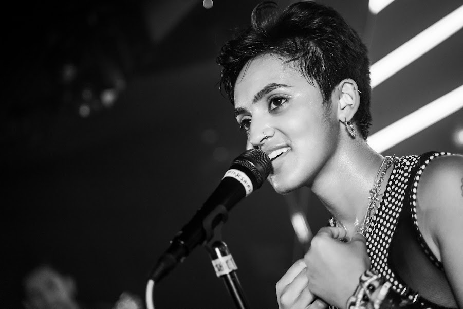Fortunately, I only missed the first track, so I was still in for a treat! ‘She Loves Me Not’ was my first exposure to Troi, backed only by a Roland drum pad for backing tracks and effects and armed with a Fender electric guitar. This track welcomes me to power pop sensibility and a fantastic hook, as well as a great stage presence from Troi even with them being the only person on stage! The following ‘Dirty Tampon’, a strong moment in the set for me, is introduced as a song revolving around the eventual comeuppance from dating a narcissist, before a more electronic soundscape surrounds the overpowering electric guitar tones. On this track, we are blessed with the sound of Troi’s incredible vocal range as they reach some incredible falsetto moments in the song’s chorus!