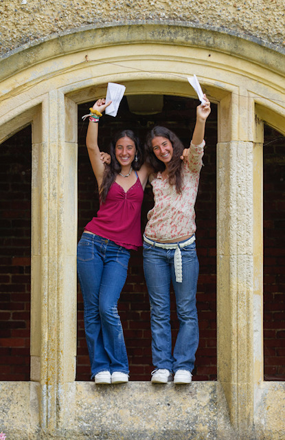 Identical twins Gabriella and Olivia Soars celebrated the end of a long wait today when they opened up their GCSE envelopes at Roedean.