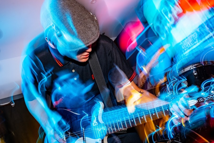 We have been totally blown away by The Atom Jacks on several occasions during the past year or so and we knew to expect a truly top notch performance this evening. We weren’t disappointed! We were somewhat surprised as being a fancy dress ‘Heroes vs Villains New Year’s Eve Ball’, we had assumed that the instrumental trio featuring former BIMM Brighton students Jamie Hewitt on guitar, Lyn Gasper on bass and Sam Hoare on drums, would simply turn up wearing their hazmat jumpsuits which will protect them from any nuclear fallout and flying champagne corks. But no, they were in disguise!