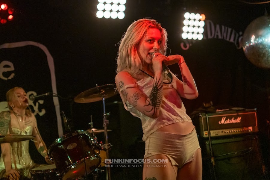 The quartet took to the stage at 10:16pm and for the next forty minutes (until 10:56pm), they and an additional (male) guitarist JJ Symon from The Damn Shebang set the world to rights. The outfit begins with their shouty ‘C.*.N.T’ anthem, which almost from the off saw singer Ari throw herself to the floor. ‘Pretty Good For A Girl’ followed and I can wholeheartedly confirm at this point that they sounded as good as they used to be pre-Covid, if not better! The catchy ‘Hurtz’ with its “‘cos you only like to” chorus speedily followed. For this track, Ari joined the punters in the crowd for some dance/mosh action.