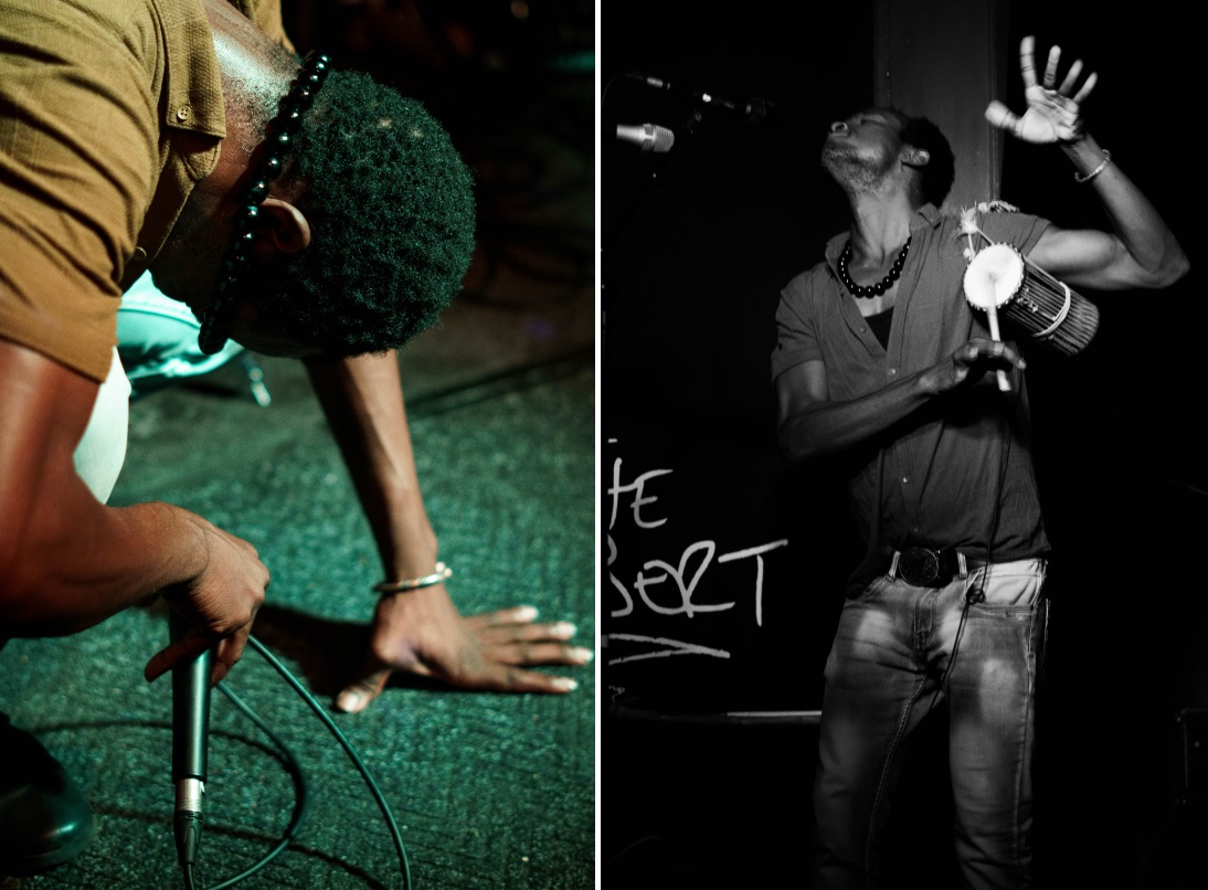 With keen eyes, I view upon the trifecta of members that make up Avalanche Kaito adjust their illustrious display of musical equipment on the stage, which is now adorned with traditional Burkinabe instruments (including a tama drum, peul flutes and a musical bow), a laptop and unconventional guitar amplifiers. Some moments later, drummer Benjamin and guitarist Nico erupt into very tribal rhythmic progressions, albeit loose and bordering on arrhythmic (not necessarily a bad thing, mind!).