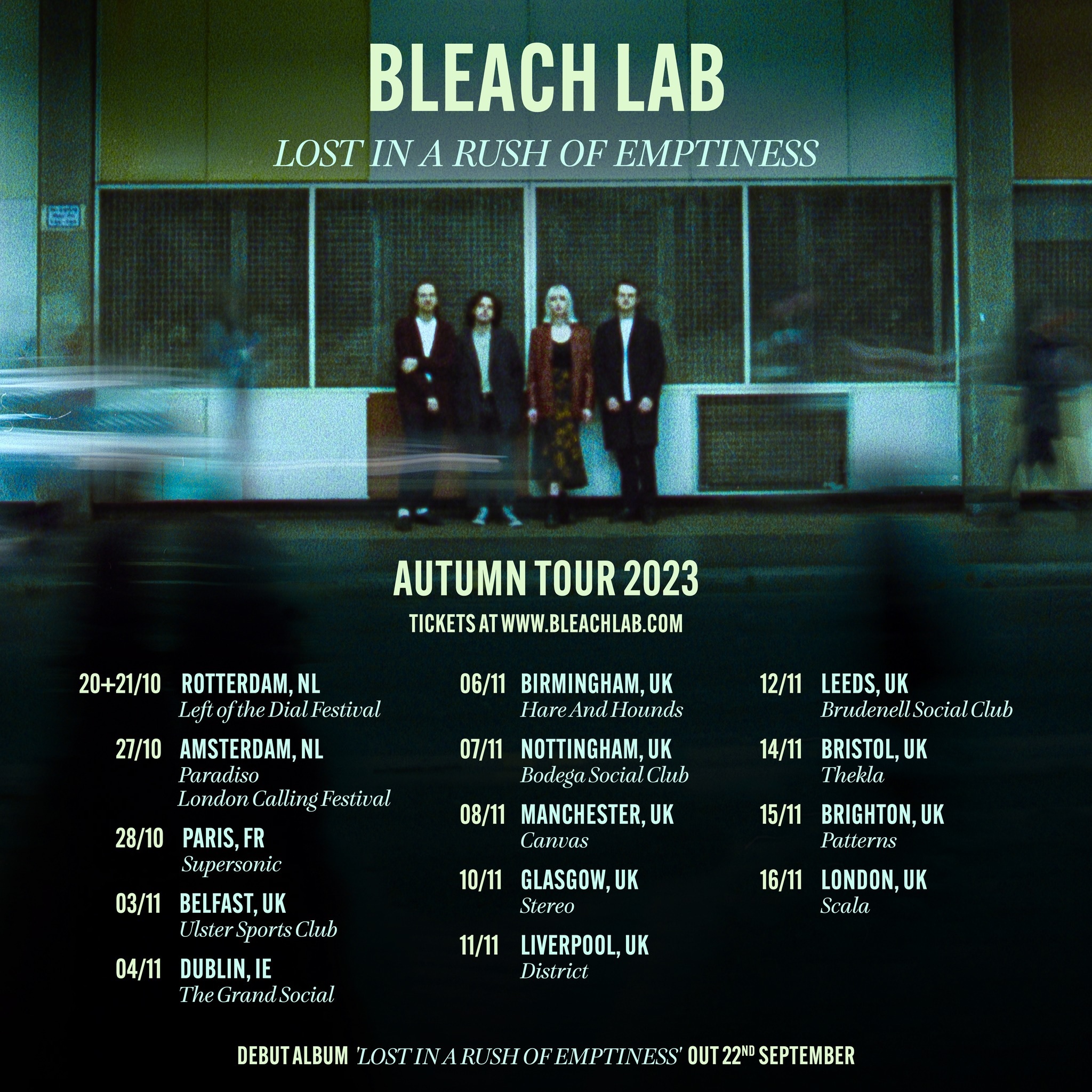 Originally hailing from Buckinghamshire, South London based indie dream pop quartet Bleach Lab have announced that they will be playing live in Brighton on Wednesday 15th November, (courtesy of FORM promoters), where they will be entertaining fans at Patterns which is located at 10 Marine Parade, Brighton, BN2 1TL which is opposite Sea Life Brighton. This date is part of their ‘Lost In A Rush Of Emptiness’ 15 date tour in support of their latest long player, which can be located on the band’s Bandcamp page HERE.