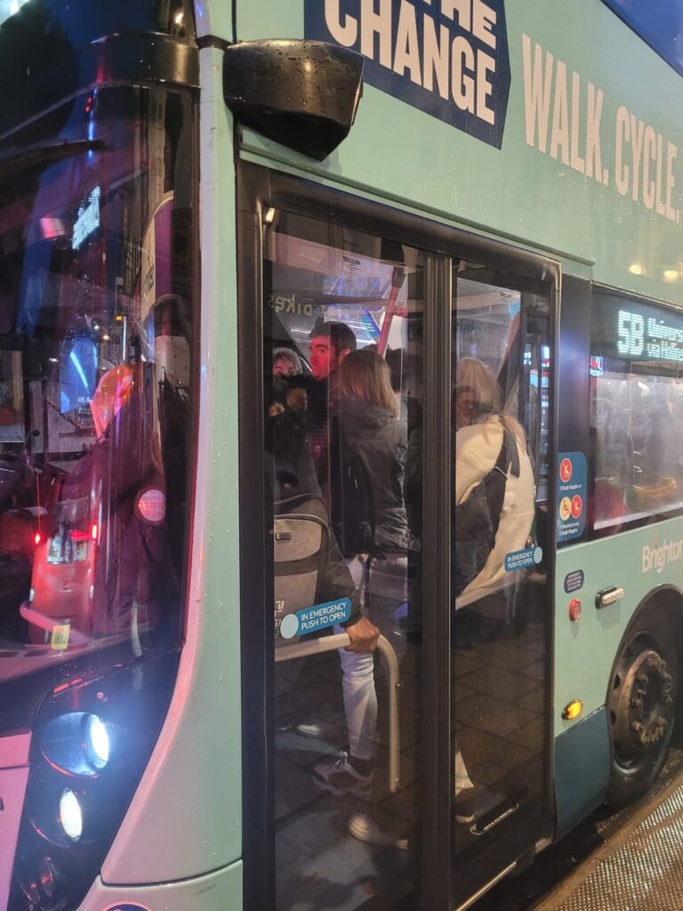 I work nights and have to catch a bus hour and 45 min before I start work as 25 and 24 buses often full and the have to walk rest of the way as 25 now only go to old steine. Used to go to Palmers Square. Students don’t give up the disabled seats for people less able to stand, I cannot climb the stairs as bad knees, but often have to stand when I am able to even get on a bus