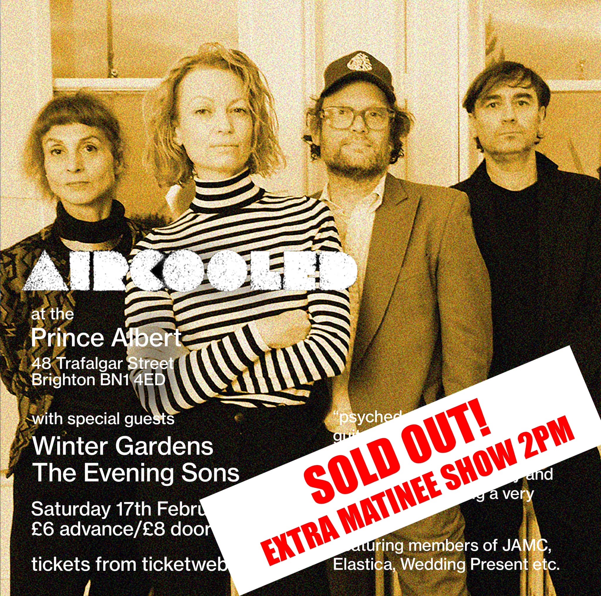 Aircooled are a supergroup for those that are in the know! It’s fair to state that they are purveyors of guitar tainted machine rock! Last year the outfit dropped their debut long player ‘St. Leopards’. which is a play on where they are based St Leonard’s-on-Sea. They are set to release the follow up, titled ‘Eat The Gold’ on 16th February which can be purchased HERE. In celebration of this Aircooled will now be playing two album launch gigs on Saturday 17th February here in Brighton at The Prince Albert. Support will come from Winter Gardens and The Evening Sons. Tickets for the concert 8pm concert have now sold out but tickets for the new added 2pm matinee show are available HERE.