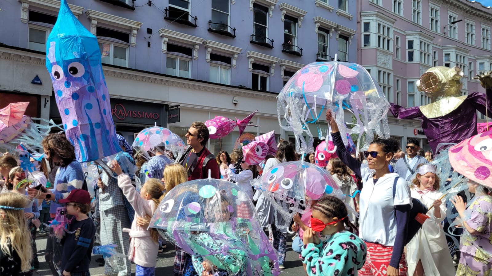 Roads were shut from 6am for the annual parade, featuring colourful and decorative floats, including a giant bed and dreamcatcher, as well as costumes made by Brighton and Hove children.