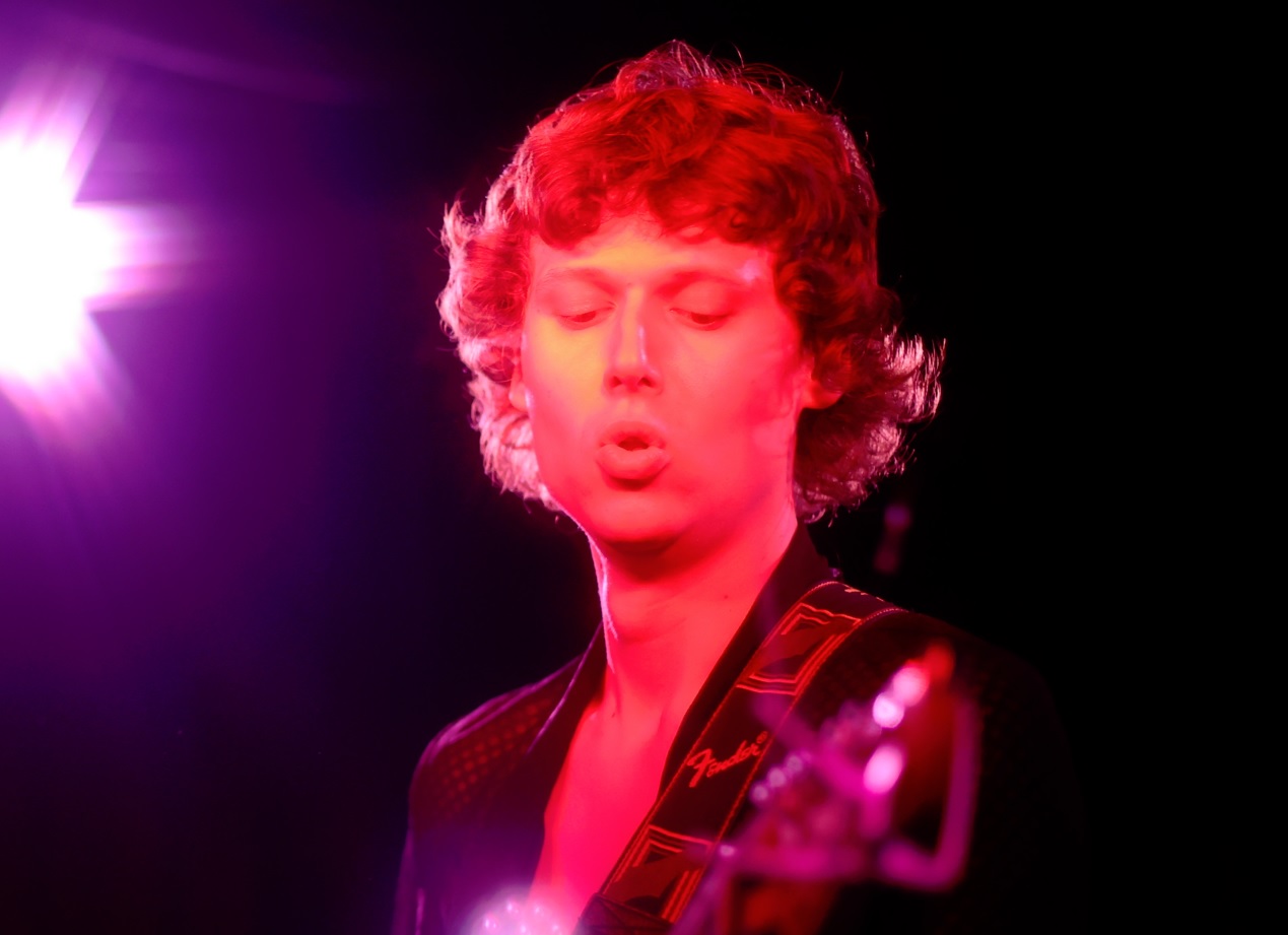 ‘Humdrum’ set off with blisteringly fast drumming from Jed, which set the pace for the others to match. The guitars had a psychedelic alt-country sound, which later became more new wave. Ben’s keyboards added an atmospheric note. Tambourine player Oscar indulged in trance-like dancing for the first time during this number.