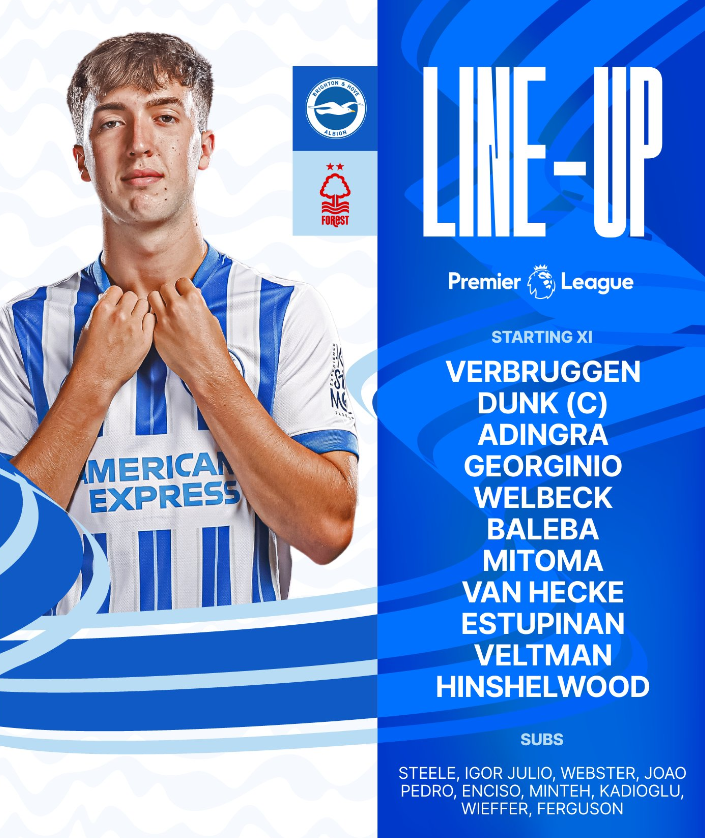 Brighton and Hove Albion face Nottingham Forest at the Amex with Georginio Rutter down to make his debut and Joao Pedro returning to the squad on the bench.