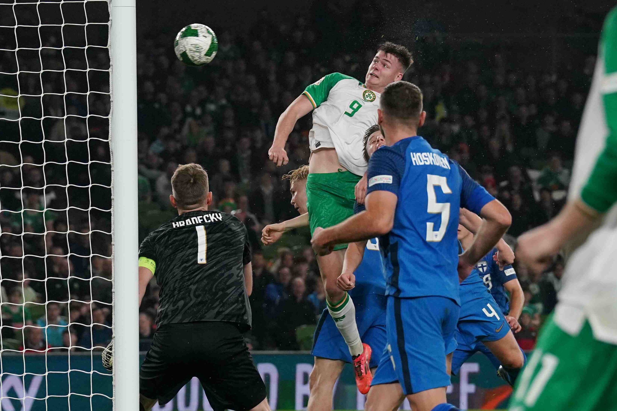 Liam Scales, though, had to throw himself into the path of the midfielder’s 16th-minute shot after Nikolai Alho and Robin Lod had exchanged passes down the right to open Ireland up.