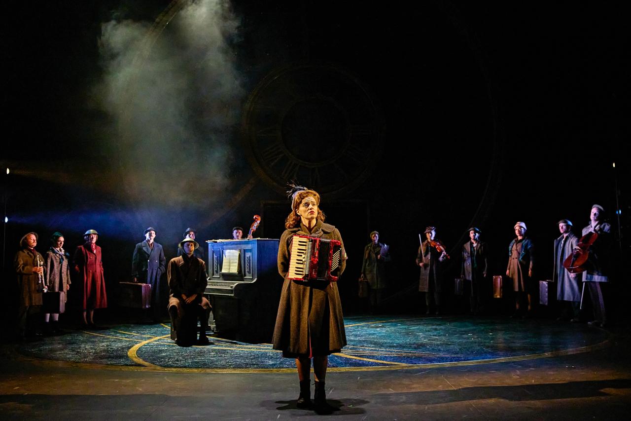 As the sounds of a railway station start to gently penetrate the scene the piano playing becomes louder, a ‘public’ station announcement reminds us to switch off our mobile phones and a soldier arrives singing ‘We’ll Meet Again’. Within seconds an ensemble of singers and musicians fill the set creating the atmosphere of a busy WW2 evacuation scene.