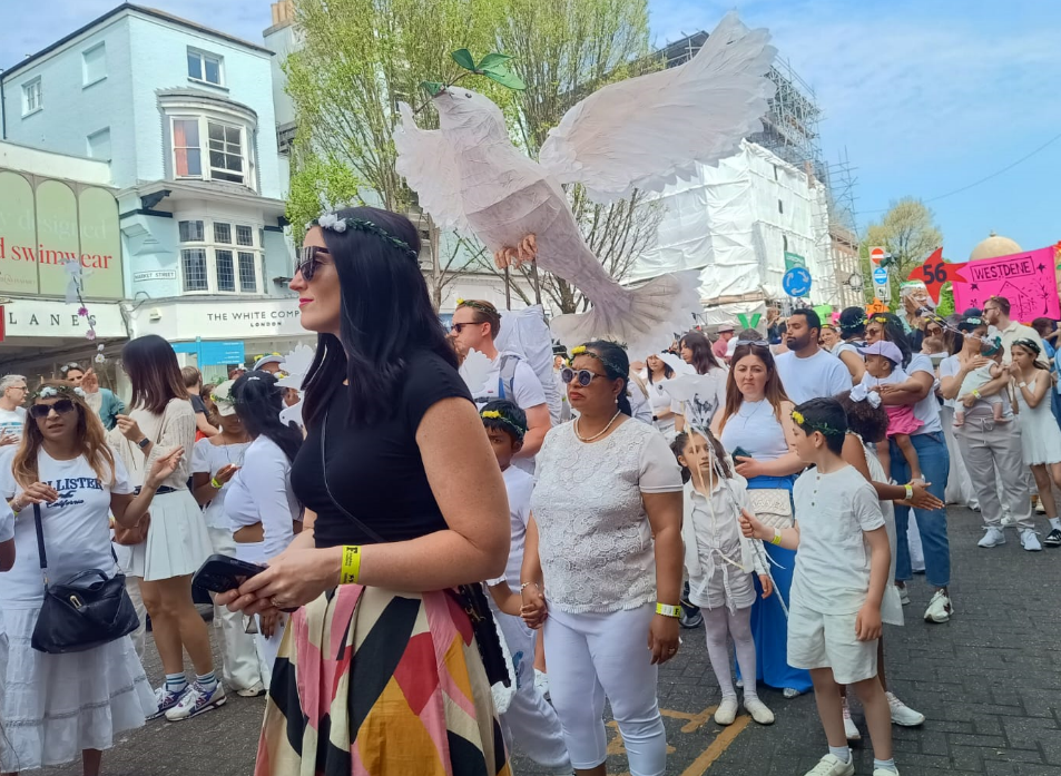 Several bands played as other chanted or drummed along a route from the North Laine to the seafront.