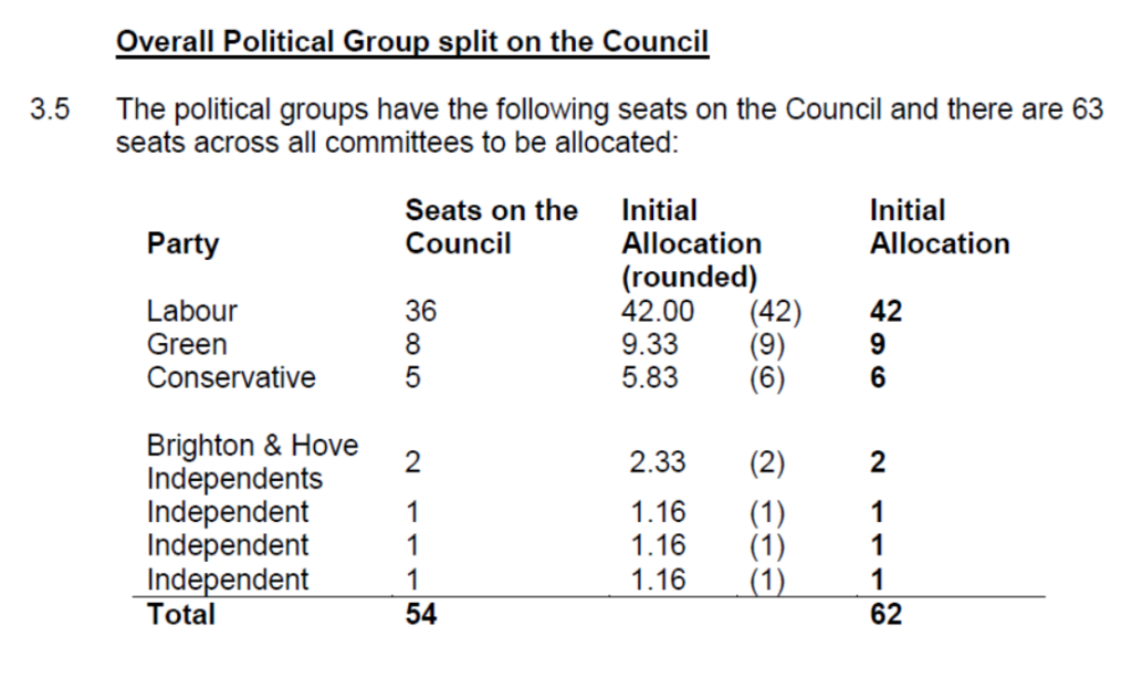 “There is no particularly fair way to decide which party gets one in these circumstances so officers allocate it to the largest party which is what happens everywhere else – and has always happened at Brighton and Hove City Council.”.