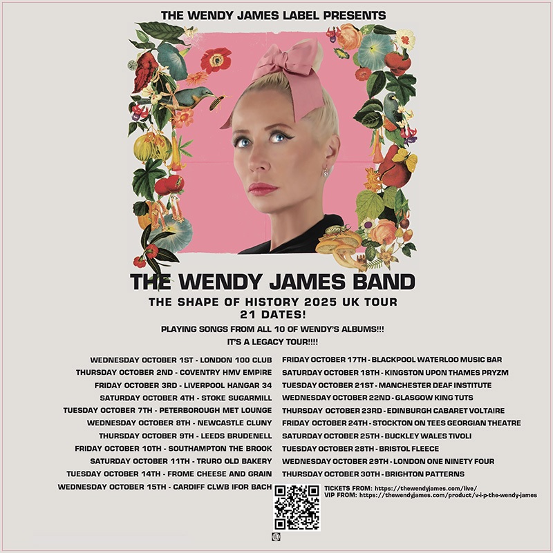 Wendy James of Transvision Vamp fame, has announced a UK tour in October in support of her recently released new album ‘The Shape of History’. Written, produced and mixed by James and recorded in West London and New York City, ‘The Shape Of History’ is the tenth solo album by Transvision Vamp lead singer, and it is available digitally, on deluxe vinyl and via deluxe CD – Details HERE.