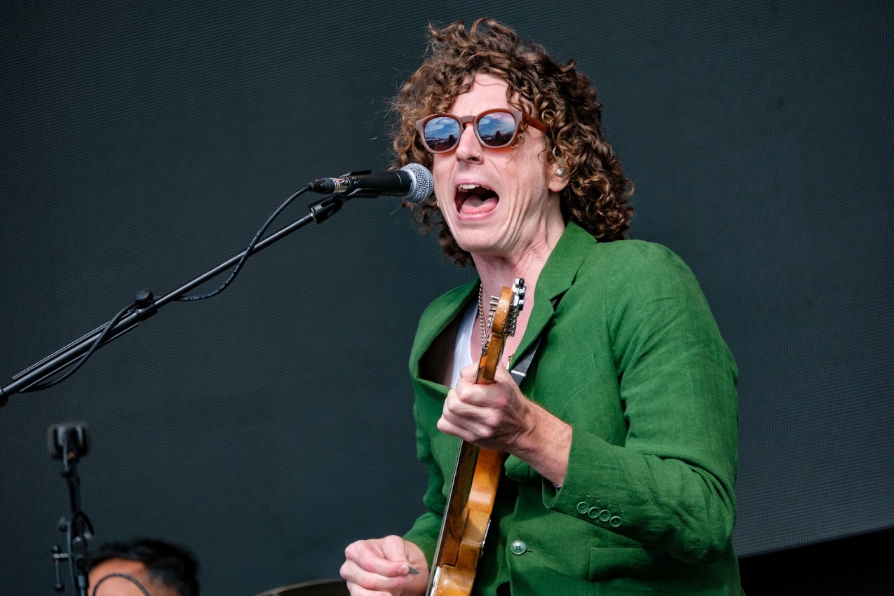 The penultimate act on Sunday was Everything Everything, dressed in matching turquoise shirts. The Manchester art rock band are noted for their eclectic sound and complex, avant-garde-inspired lyrics. Their opening song ‘The Mad Stone’ set the tone with its fun, fresh, experimental pop qualities. Across the set, the brilliance and intricacies in Jonathan Higgs’s vocals were striking. This included, the fast tongue-twisting parts on ‘The Mad Stone’, the poppy higher pitched ones on ‘Kemosabe’ and tender mellower moments on ‘Jennifer’ to highlight but a few. In some cases, he used different styles within the same song, as on ‘Distant Past’. ‘Distant Past’ was a definite crowd favourite with its strong dance feel. From the start and throughout Everything Everything’s fans in the crowd added to the great performance from the stage. No need for the band to prompt for hands-in-the-air clapping, the eager audience were already onto it. After the up-tempo ‘Distant Past’, Everything Everything closed on a more solemn note with ‘No Reptiles’. Not that that change in tempo detracted from the totally entertaining and enjoyable nature of such an inventive and fun set.