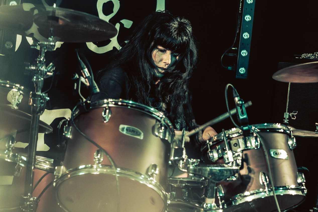 The band take to the stage around 9:30pm and set up shop by setting the mood. They place 10 cream coloured mock candles of varying sizes at various selected points across the stage as well as a trio of lanterns, all for added atmosphere. I’m starting to wonder if they have elected to ditch all of the house lighting, which would have been a nightmare for our photographer (David Gyokos) this evening, but thankfully the lighting does remain on. Although it would have been rather novel if it wasn’t. That would have certainly added to the gothness of the performance. Like Horror Vacui’s image, tonight’s punters are a mixed bag, but obviously one colour dominates the room, it’s black! All of the band are wearing black as are a majority of the punters, and a handful have also impressively gone the whole hog by applying the white and black face makeup.