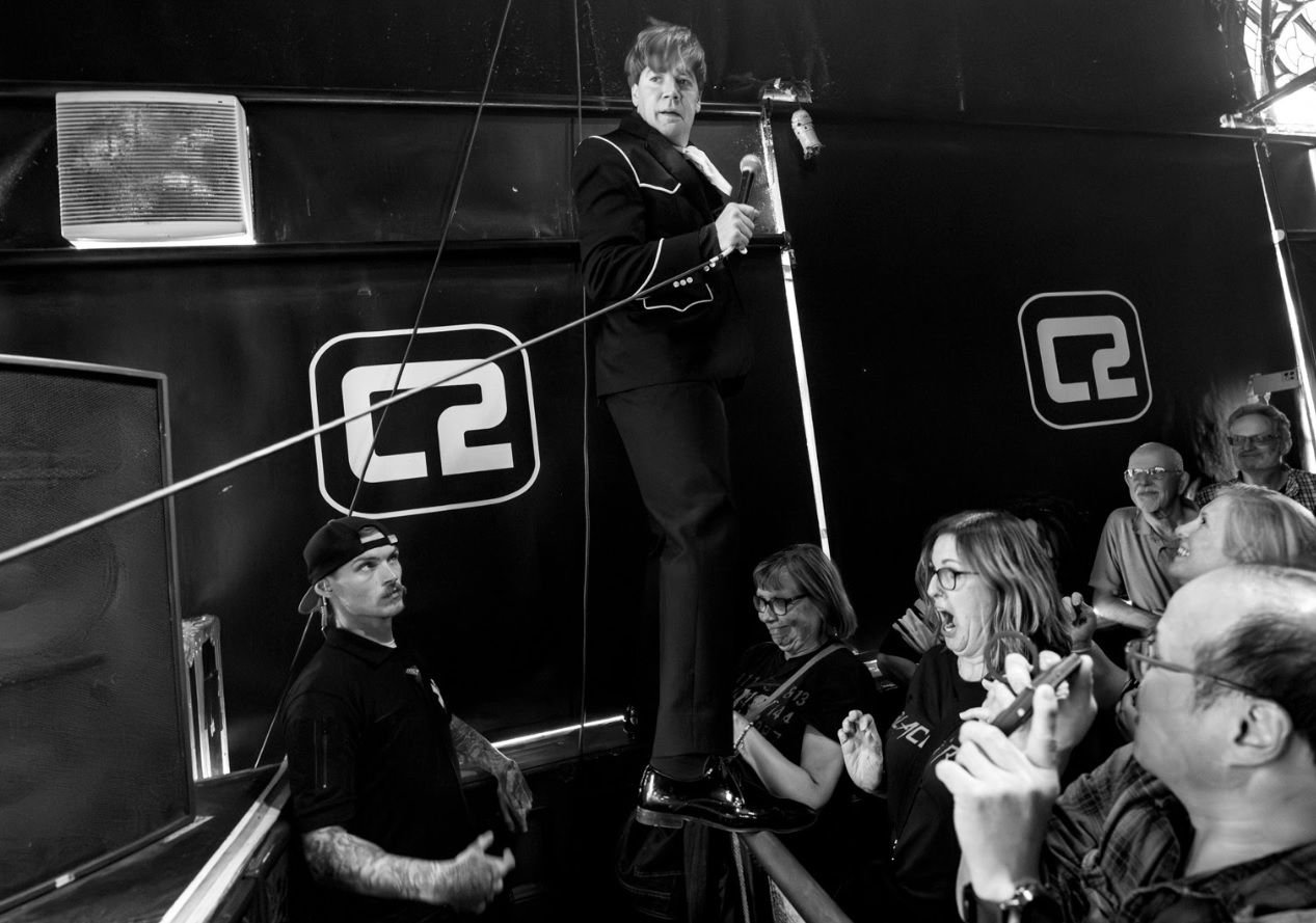Selection three was ‘Bogus Operandi’ from 2023’s ‘The Death Of Randy Fitzsimmons’ album and this is already clearly a crowd favourite. It’s another gritty offering, one which sees Pelle on up close barrier action again. In fact he does this on virtually every track and the punters thrive off of it. Track four was the set highlight for me, this being their ‘Hate To Say I Told You So’ earworm single from 2000’s ‘Veni Vidi Vicious’ album, which has truly been engrained in my brain since release. Although interestingly it didn’t actually chart anywhere when first released as a single in 2000, but two years later it was re-released and climbed to No.23 in the UK singles chart. I think that this is a crime as it’s got No.1 hit written all over it. Today’s rendition was blimmin’ epic and included a crowd participation section. More epicness followed with the arrival of crowd favourite ‘Tick Tick Boom’ from 2007’s ‘The Black and White Album’ album.