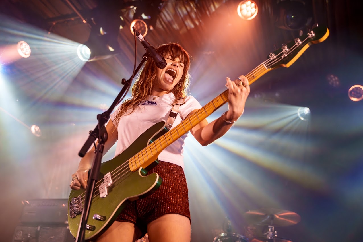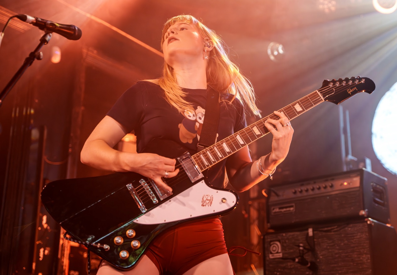The Pill commence their 8 track set with the energetic ‘Scaffolding Man’, which is one of the six songs found on their EP. It always reminds me of Panic Shack’s ‘Mannequin Man’, who The Pill actually supported a few months ago (Review HERE). As the tune begins, the girls have their backs to us with their instruments slightly raised and the lighthearted tone has been set. They turn and Lottie says “How we doing Brighton?”. Meanwhile Gavin is sitting stage left (our right) on the band’s own drumkit, which is cleared away afterwards, as The Hives have their own larger kit. Prior to the commencement of their second number, the unreleased ‘Salt Father’, Lily addresses the crowd on the subject of sugar-daddies, and then Lottie lets out a “1-2-3-4” and they are away! The track has an abrupt ending that no doubt caught out a few boppers in the audience.