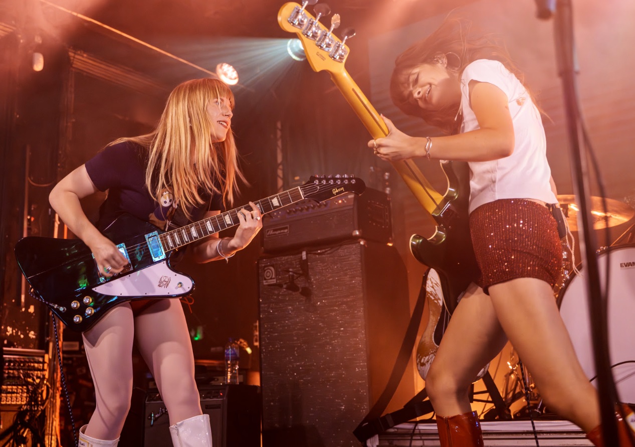 Selection three was ‘Problem’ from ‘The EP’ which has a slower beat than the previous two songs, but what it does have is the repeated “A problem” earworm lyrics throughout. The yet to be recorded ‘Leo’ is given an outing next and this benefits from some meaty guitar action as well as a slower chugging drumbeat. After this the audience are encouraged to spin round, some do take them up on their offer, and haircuts are the theme next with the arrival of ‘Money Mullet’, which has some dirty gritty bass action from Lottie and some fast guitar playing from Lily. The subject then moves onto women drivers, for their comical skippy beat ladened ‘Woman Driver’ tune, which also has a sharp ending.