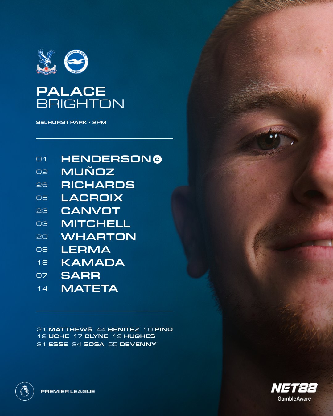 Fabian Hürzeler has named the same starting line up to face Crystal Palace at Selhurst Park as he did last weekend when the Seagulls beat Leeds United 3-0 at the Amex.
