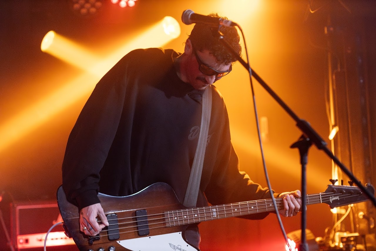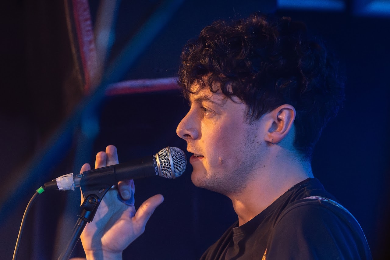 Dread FM is a solo project of talented local rapper Flynn Murray, although for live shows including tonight we have the addition of bass player Max Stevens. Flynn blends together alternative hip-hop with electronic and rock. Dread FM are friends of tonight’s headliners Bacci Pouch, having appeared on shows together in the past and kindly stepped in as a late replacement for alternative rock band Not Right Here who pulled out of the show due to illness. Flynn and Max are ready to go at 8:24pm. The backing track kicks in and off we go with slick rapping from Flynn and some heavy bass playing from Max on opener ‘The Hit’, one of three tracks included in the set that is lifted from Dread FM’s debut album ‘Who Killed The Vibe’. Flynn is full of energy despite hurting his back prior to the gig. The frontman even asks us to “make some noise if you’ve hurt your back”. The quick-fire lyrics continue on ‘Sunset 1’.