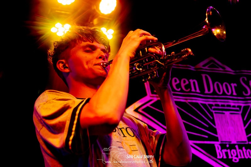 “It’s very lovely to be back in Brighton. We’re actually going on tour with thistle. in a few weeks, so big love to them”, quotes Jack before stepping back from lead vocal duties on ‘Tiny Feet’ to let brother Harry take the reigns in a calm, quiet, crickets-in-the-background-of-a-1950s-desert, guitar passage that kicks straight into a reverberant chorus, complete with wondrous harmonies and matching guitar licks. The jack of all trades (make that a Ned of all trades), Ned hops onto trumpet for their most expansive song of the set, ‘Unmasked’, while drummer Jimmy Brennan takes hold of the guitar for a more patient sonic backdrop. This track’s opening leg creates a more intimate soundscape for Little Grandad to dance within, until Jimmy brings in the groove via marching snares that evokes the memories of 90s indie folk/punk giants like The Mountain Goats or Neutral Milk Hotel. The song climaxes into erratic drum hits and Ned running his cornet through his guitar pickup, in a frenzy of post-rock and textured chaos.