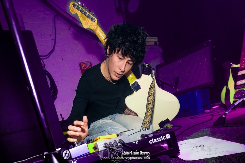 My third time seeing them, jangle pop newcomers Goodbye follow on from Little Grandad’s footsteps for the second set of the night. A supergroup comprising of members from Flip Top Head (guitarist Alfie Beer), Moon Idle (drummer Elik Eddy) and Jar of Blind Flies (bassist Jake Smith), these guys enter the atmosphere with ‘Reverie’, a track that shudders with ambience and heavy reverberated guitar passages à la My Bloody Valentine (whom appear on Jake’s shirt). Vocalist Megan Wheeler continues to dazzle against the kaleidoscope of sonic interplay of her bandmates, gliding on a beautiful falsetto, complimented by additional vocal work from Alfie and guitarist Sarah Ryan. Elik opens the following ‘13a’ on the smallest hi-hat ever seen at a rock show, before the remainder of the band follow suit for a more rustic performance due to Sarah’s exchange of electric to acoustic guitar. Only two songs in, and Goodbye have matured leaps and bounds since my last encounter with them…!