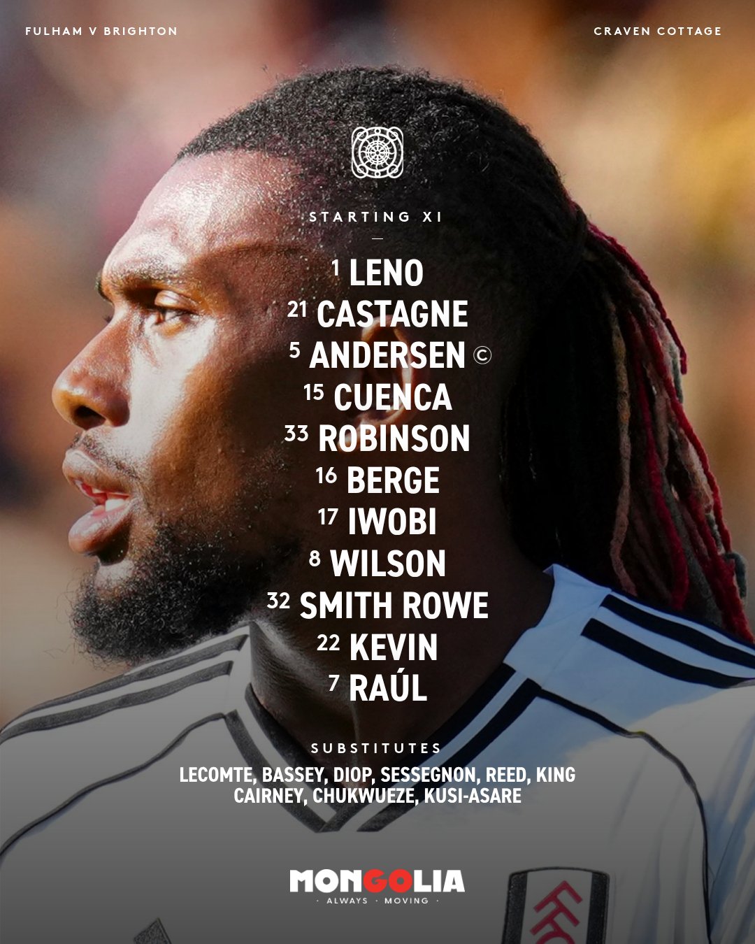 Marco Silva has also brought Nigerian defender Calvin Bassey back into the match-day squad – on the bench – while Jorge Cuenca keeps his place in the heart of the home side’s defence.