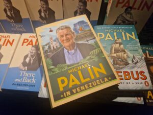 A natural highlight was the discussion of his latest travel book, Michael Palin in Venezuela, a vivid account of his 2025 journey through a country of dazzling extremes — published alongside a three-part Channel 5 documentary series earlier in autumn 2025 and before very recent global events affecting this South American country. The new book was on sale at the event courtesy of Hove’s City Books, alongside reissues of several of his titles with fresh covers.