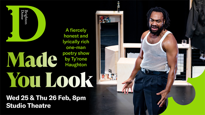 Made You Look is coming to Brighton Dome’s Studio Theatre on 25th & 26th February, and we are excited to hear from one of our most explosive spoken word performers.