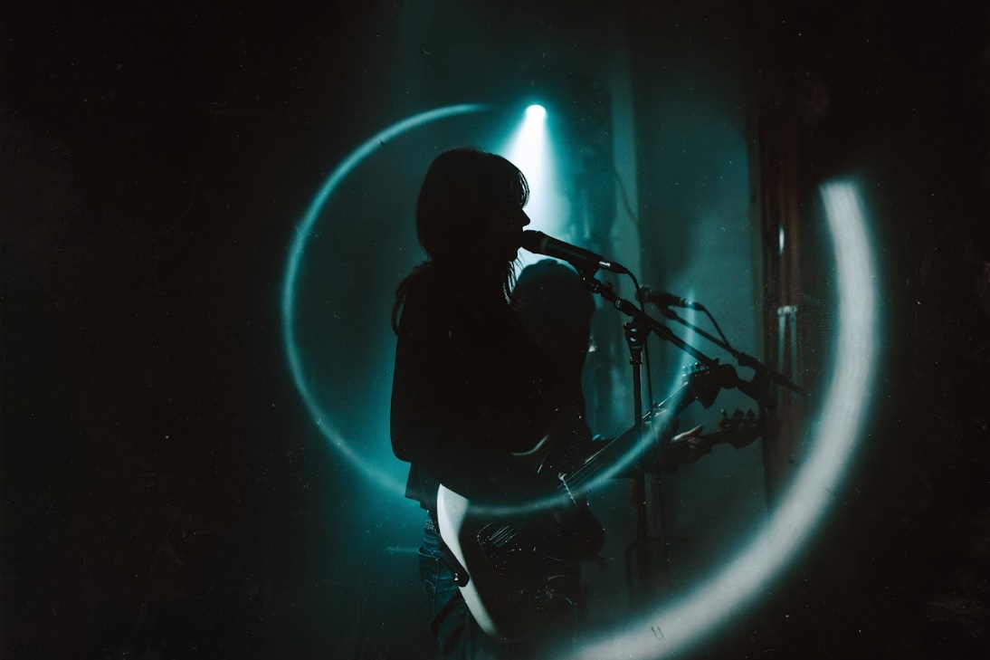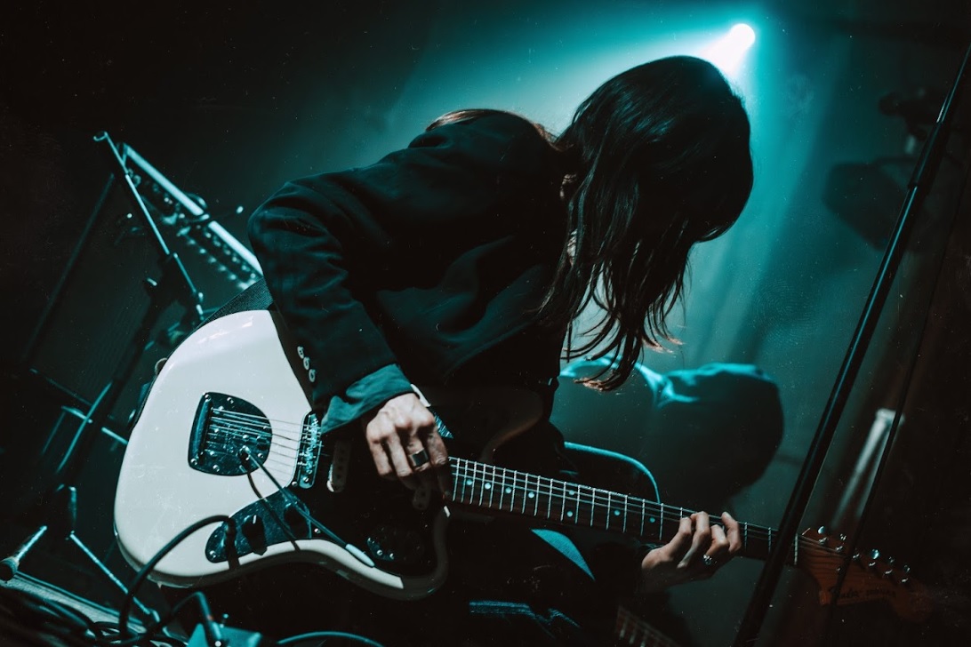 Now that you’re in the zone, we can switch to the venue in order to ensconce yourself in the world of Maria. The performance runs for 54 minutes, from 9:06pm to 10:00pm and during this time, we are rewarded with a dozen compositions. Maria Somerville is centre front and taking care of vocals and guitar with tremolo, accompanying her is lilic on bass (stage left, our right) and Henry Earnest on drums and presets (stage right, our left). For the last handful of tunes they are joined by Jack Fanciulli (Asa Nisi Masa) on second guitar, who positions himself far right (stage left).