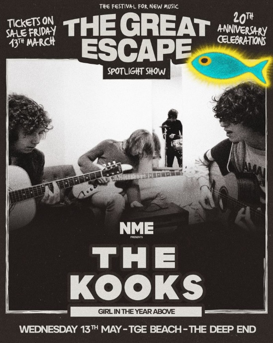 Thursday 5th March – Today, The Great Escape partners with globally renowned music and pop culture brand NME to announce British indie favourites The Kooks will headline a special 20th Anniversary Spotlight Show at the TGE Beach on Wednesday 13th May 2026.