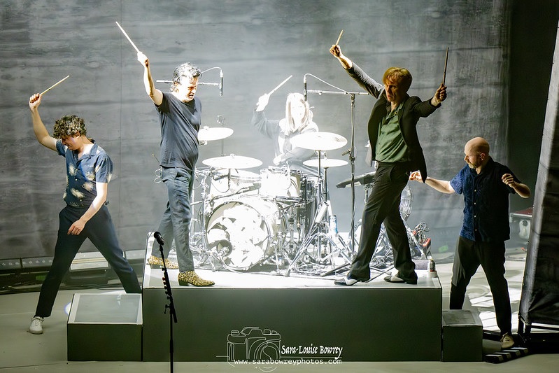 Next things go electronic for the catchy ‘Hooked’, which sees more strobe lighting effects. This is followed by the synth-heavy track ‘Outsiders’, with Alex playing with the crowd with his arm movements, orchestrating them to perform a Mexican wave style early in the track. At the end of the song, the entire band converges on percussion for a communal, chaotic drum solo. The band leaves the stage and returns a minute later for a five-song encore.