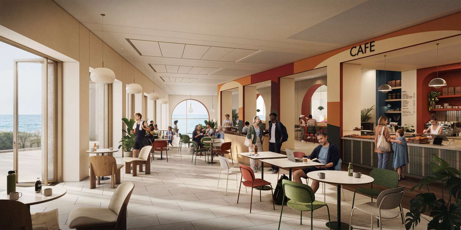 “Designed to make the most of its seafront location, the building would offer sea views from the pools, gym and café, alongside landscaping to better connect the site with the surrounding area.