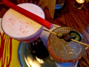 The cocktails are the headline act. Margaritas may be one of the world’s most recognisable drinks, but Wahaca’s bartenders clearly enjoy pushing the boundaries of what that combination of tequila, citrus and salt can do. We selected two cocktails from this month’s drinks special (available until 25th March). Firstly the Rhubarbarita, a soft but playfully pink take on the classic margarita. Using Yorkshire rhubarb, the drink carries a clean tartness balanced by tequila and citrus, finished with a rhubarb-and-custard rim and a stick of rhubarb that adds a nostalgic sweetness. It’s light, fruitier and extremely easy to drink — a cocktail that feels unmistakably like spring. We both enjoyed this, the colour, presentation, and taste.