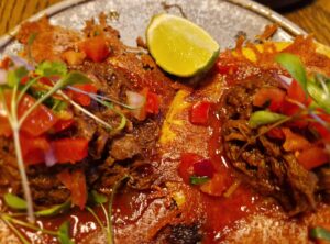 The Buttermilk Chicken Tacos were an enjoyable opening act. The chicken was moist and tender, wrapped in soft tortillas that managed to hold everything together without becoming heavy. They had a comforting warmth to them — simple, satisfying and packed with flavour. Next came the Beef Gringa Tacos, which proved to be one of the most memorable dishes of the evening. These combine ground beef, peppers, tomatoes and plenty of melted cheese, laid out on a taco that is both indulgent and balanced. Adding the tomatillo salsa which we ordered separately lifted the dish even further. The salsa itself was mild but lively, bringing a citrus brightness that had a green apple tang, cutting through the richness of the beef and cheese beautifully.
