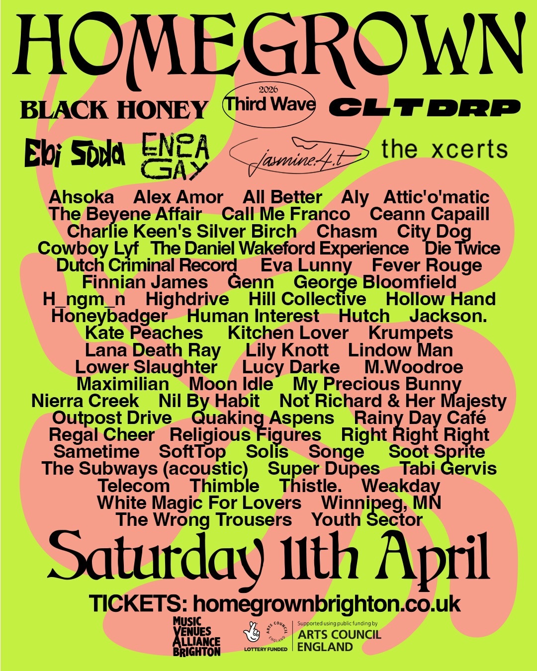 The success stories of grassroots artists in this city is something to be proud of. Every venue here has played host to local artists who’ve gone on to extraordinary things. It was only just before lockdown that Lime Garden played their first ever show, in the 60 capacity Rossi Bar with another emerging act called Lambrini Girls. Both have had truly remarkable rises since then, selling out some of the bigger Brighton venues and taking not only the UK, but Europe and America by storm. Lambrini Girls are just completing a sold out Australian headline run too. It was with great pride we welcomed HotWax as a ‘Homegrown’ headliner last year, the young group earned a loyal fanbase relentlessly playing the city’s underground circuit before eventual American tours with Royal Blood (another local) and headliners across the UK and Europe. Acts like these are an inspiration to the city and all continue to be so supportive of the bands, fans, and venues of Brighton; we’re lucky to have them! Success stories like this are continuously popping up, it’s exciting to think who on this year’s lineup is going to be the next to follow? Come catch them for yourself before anyone else!