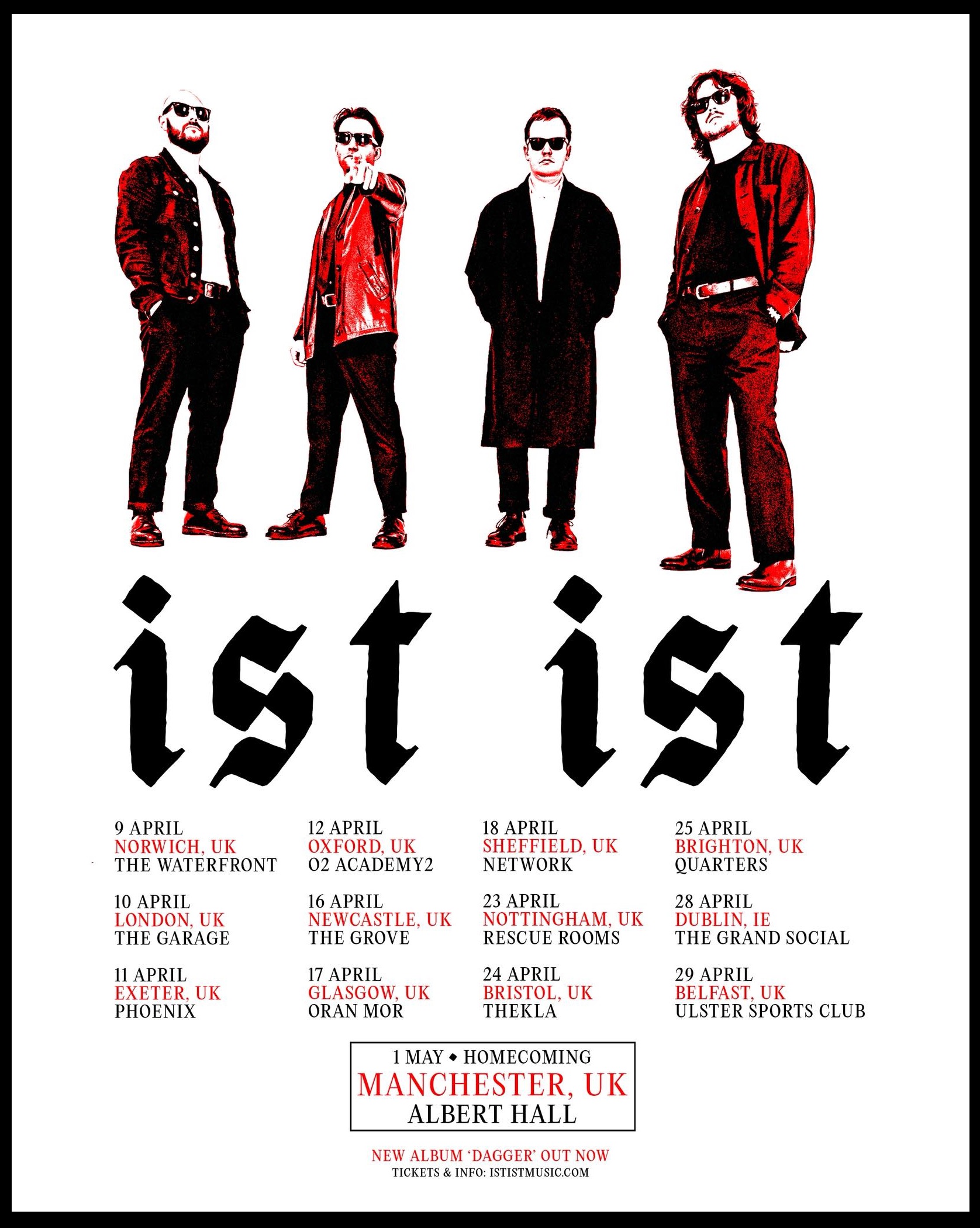 Catch IST IST marking their decade long career and teasing new music from ‘DAGGER’ at the following UK + IE shows: