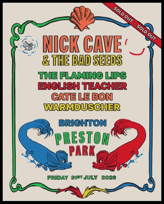 Nick Cave & The Bad Seeds today announce special guests for their sold out UK headline show at Preston Park, Brighton on Friday 31st July 2026 – their only UK show of the year. Joining the bill are The Flaming Lips, English Teacher, Cate Le Bon and Warmduscher. Brighton has been central to Nick Cave’s life and work for over 25 years, making Preston Park 2026 a truly historic homecoming event.